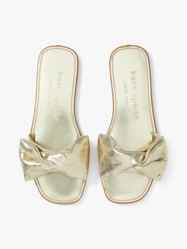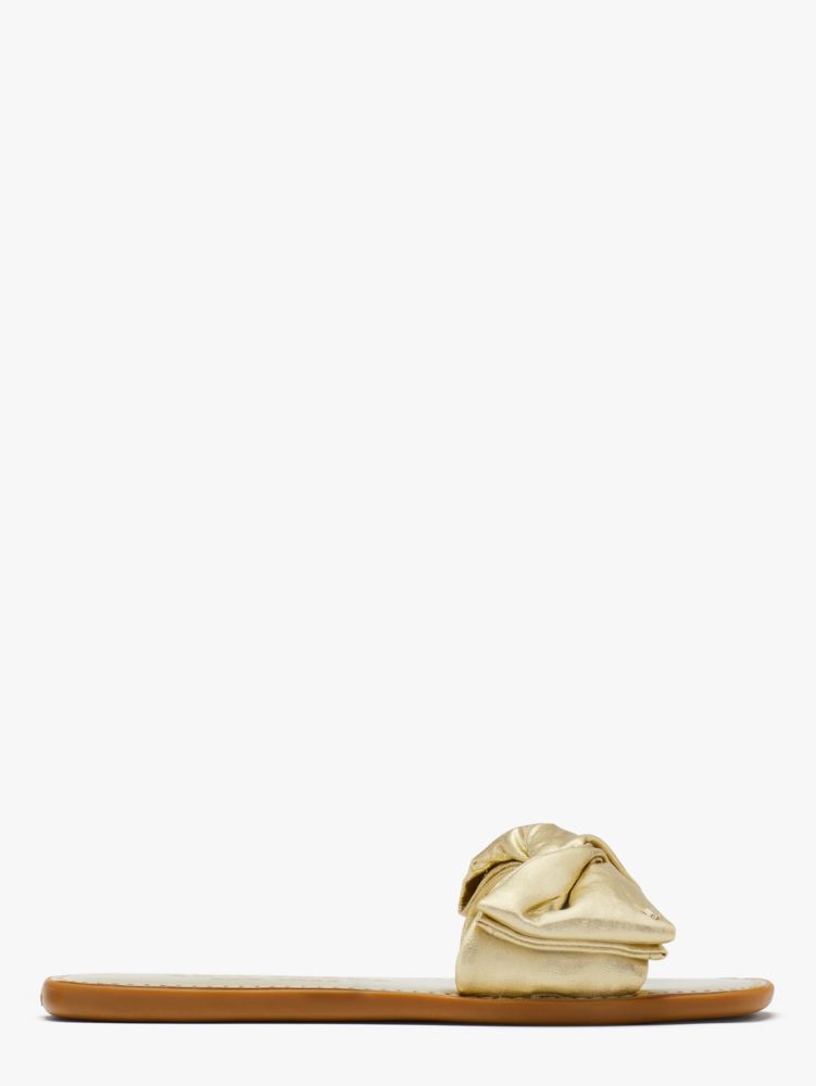 Kate Spade,Bikini Slide Sandals,Metallic,Neoprene,Lining Neoprene,Slides,Logo,Metal,Bow,Day Party,