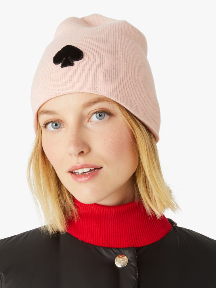 when the temperature drops, this double-layer jersey beanie with a flocked spade will keep you toasty (and on trend).