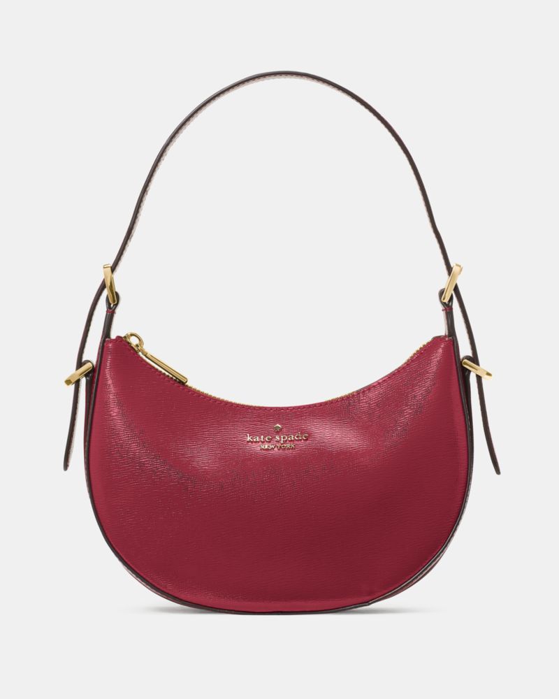 The Nova Textured Patent Leather Small Crescent Shoulder Bag is your go-to for sleek, sculptural style. Its glossy finish and curved silhouette make it a standout for both day and night. A compact shoulder bag that delivers big on impact.