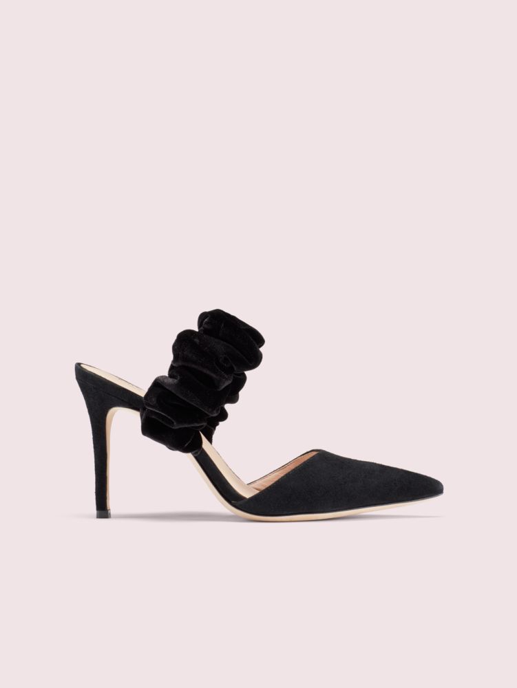 crafted of supple suede, our elegant, pointed-toe vikki pumps are elevated with a velvet scrunchie-inspired instep strap for a playful touch. they'll look cute with all your minis and midis, or use them to dress up a tee and jeans.