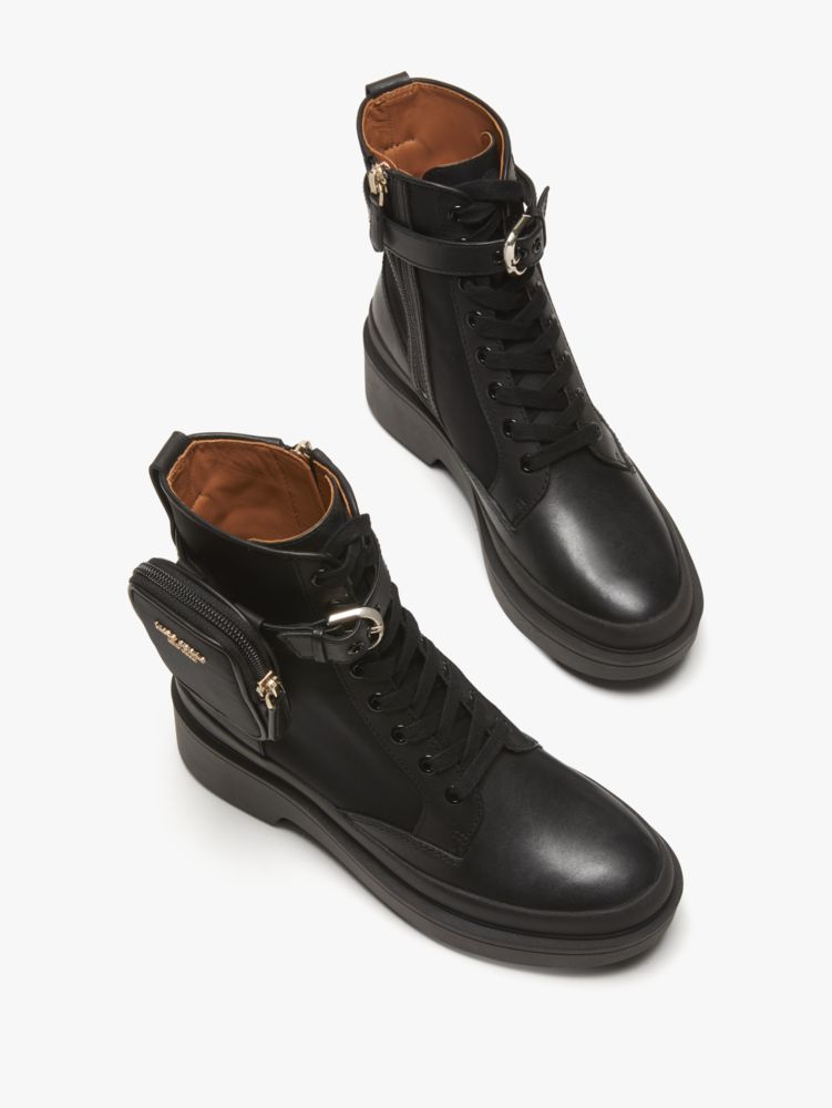 The classic combat boot, only more functional: We added a zip pouch at the side for a more original way to stash the essentials. (Card, cash, and red lipstick, of course...)