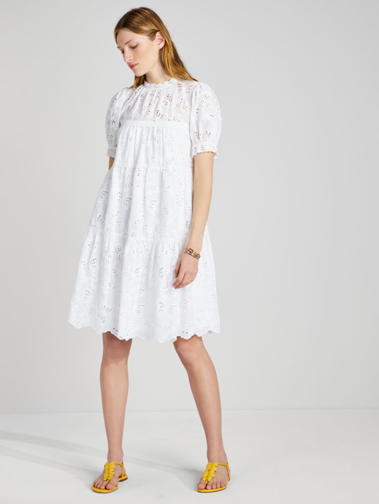 When you're feeling run-through-a-meadow romantic...this tiered dress done in white butterfly-embroidered cotton eyelet.