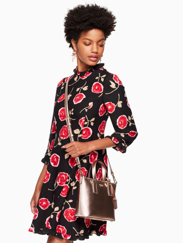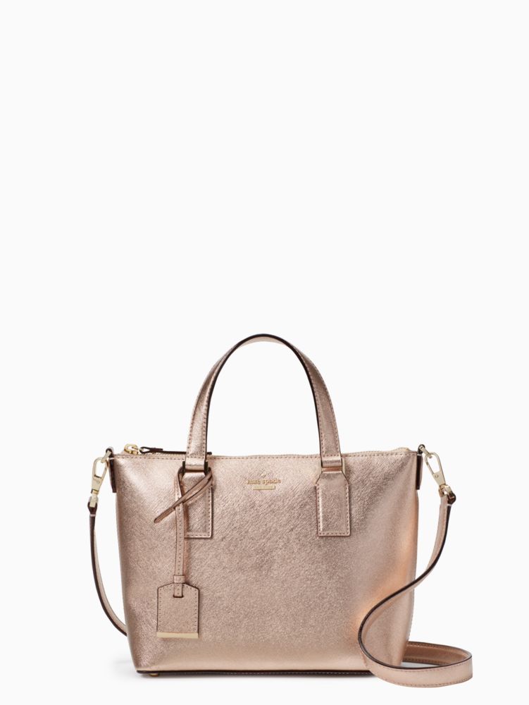this dazzling little crossbody bag in a rose gold leather is a scaled-down version of our popular cameron street lucie, complete with a matching luggage tag.