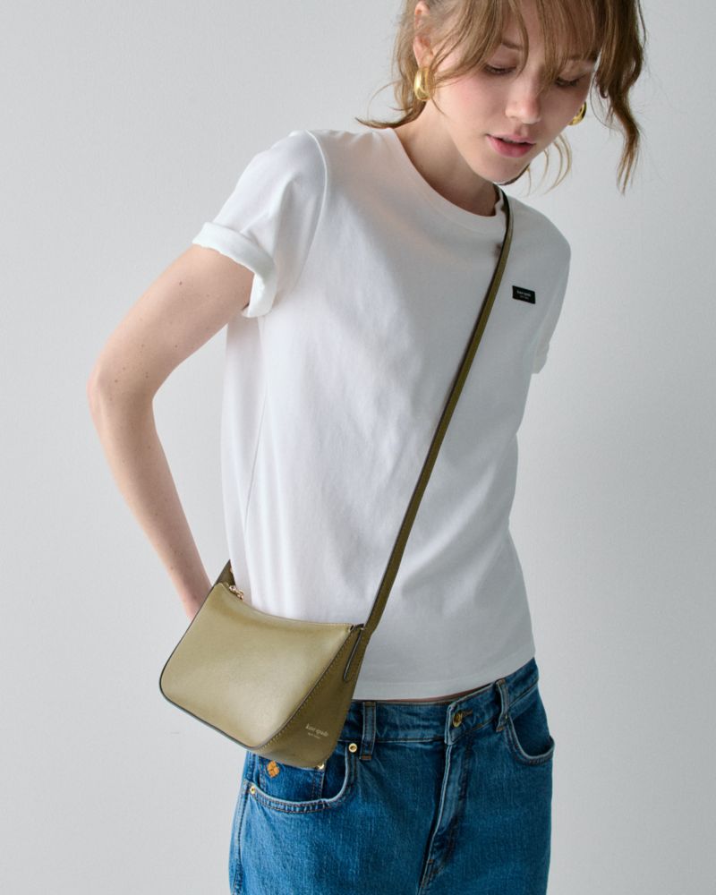 Kate Spade,Halo Glazed Crossbody,Leather,Twill,Lining Twill,Crossbody,Metal,Embellished,Compact,Adjustable,Lined,Silver Me...,Olive