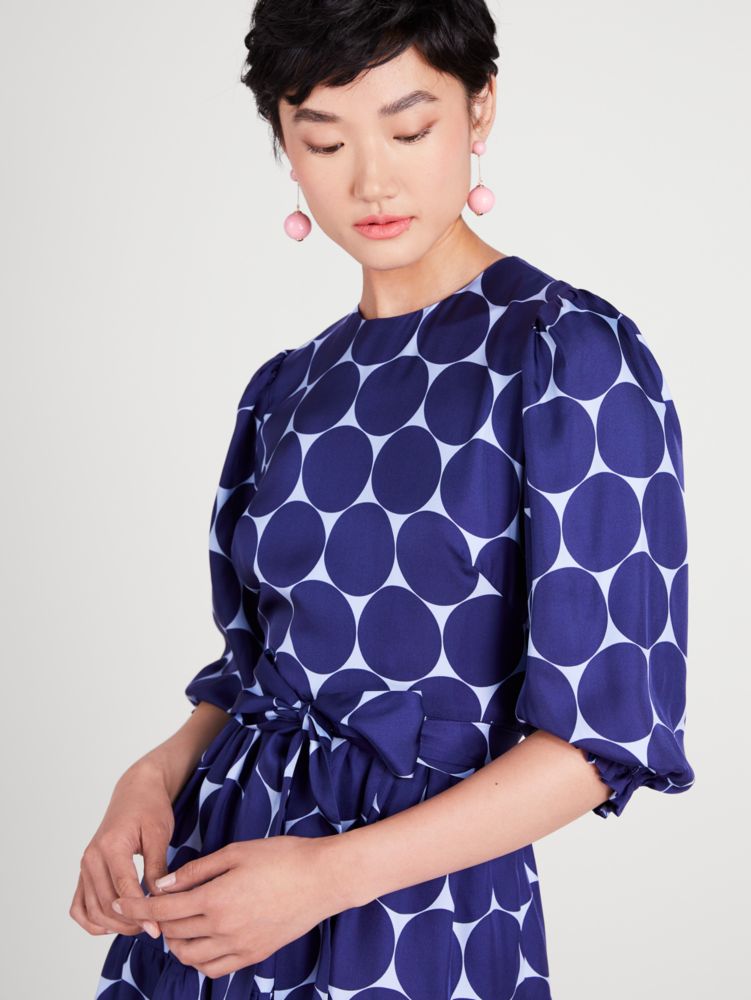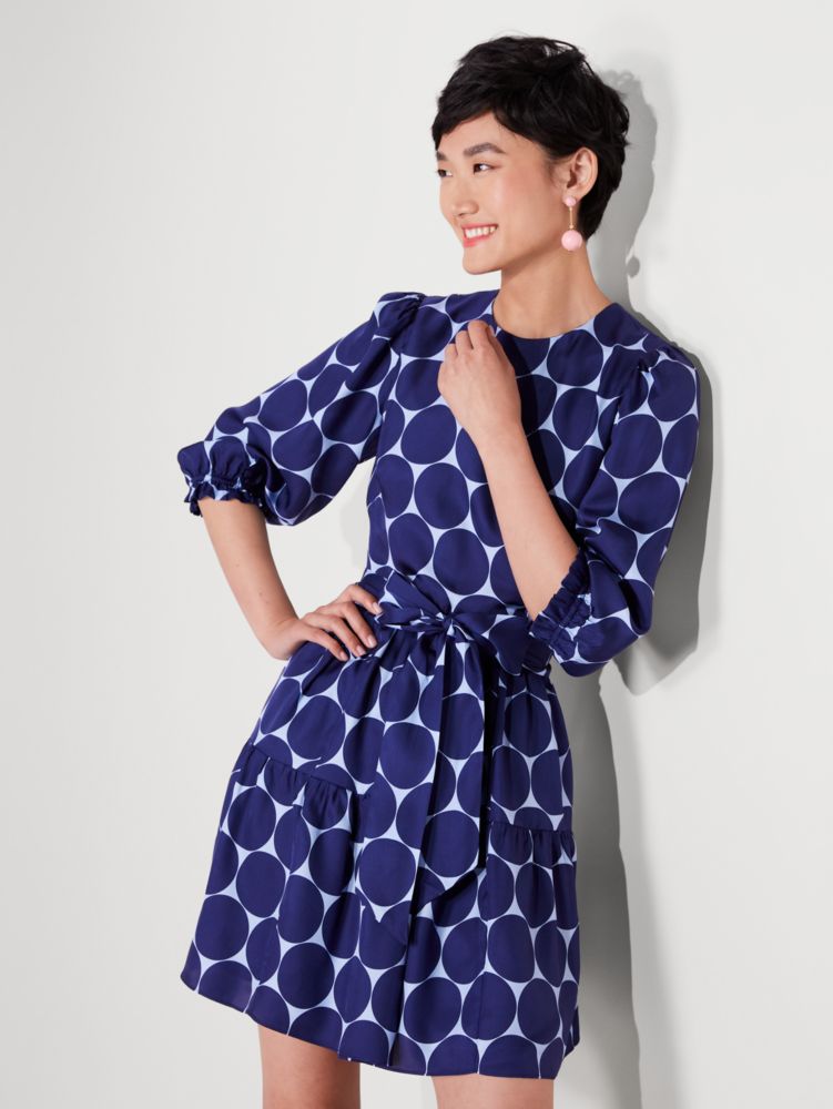 Sixties chick: In this joyful silk-blend dress detailed with modish dots, that's you.