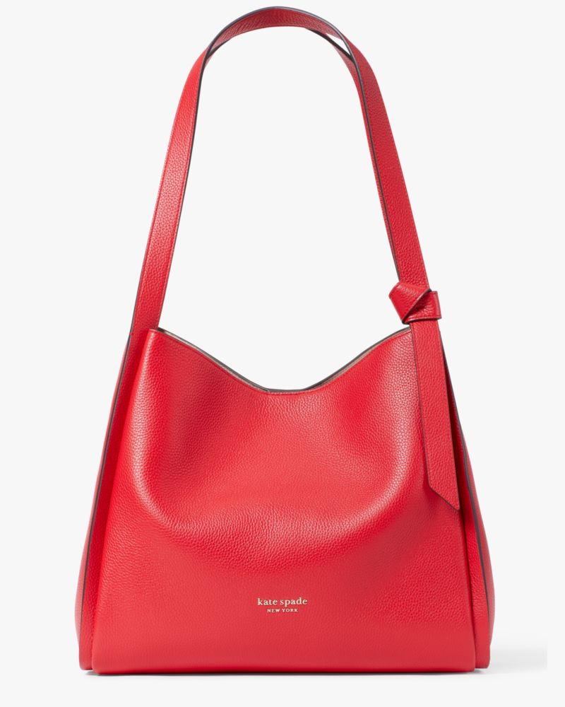 Meet Knott: a shoulder bag that ties it all together, but with a little less structure for that effortlessly cool look. Crafted from rich pebbled leather, this designer shoulder bag has a slouchy silhouette with plenty of room for your essentials (and more). It also features a knotted strap, a signature detail found on every bag in our best-selling Knott collection. This large shoulder bag is just what you need for school, work or running errands—the interior central zip compartment keeps all your belongings organized. Style tip: pair our Knott leather shoulder bag with your favorite tees to create a chic everyday look.