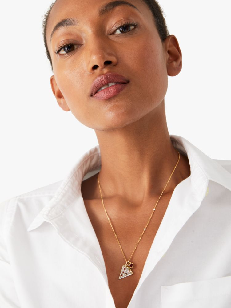 pizza...our one true love. pay tribute to the pie in this necklace adorned with a scintillating slice pendant.