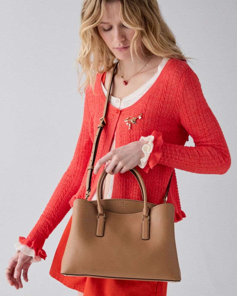 The Thompson Street satchel slips seamlessly into your workday rotation and weekend plans, thanks to a top handle and an adjustable, removable crossbody strap that let you style it your way. Inside, a center zip divider, middle zip compartment and slip pocket keep essentials sorted. Crafted in pebbled leather, our structured satchel brings a polished finish to any look.