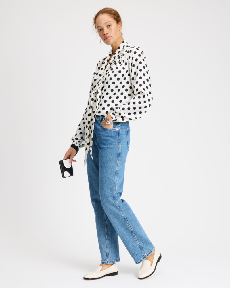 Tailored in our Breezy Dot print twill, this airy shirt is designed for a pretty tie-neck silhouette.