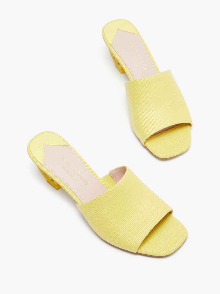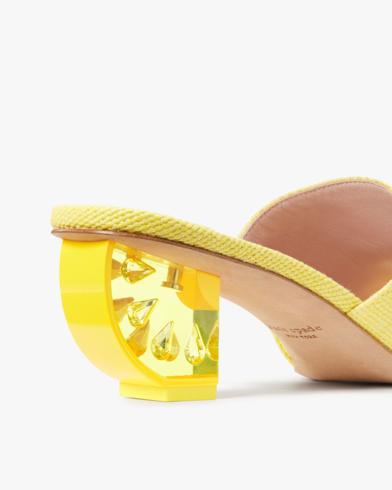 When life gives you lemons...wear them. Like these sleek raffia sandals with a sculpted lemon heel.