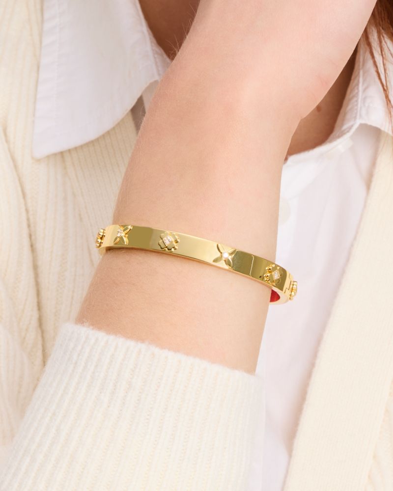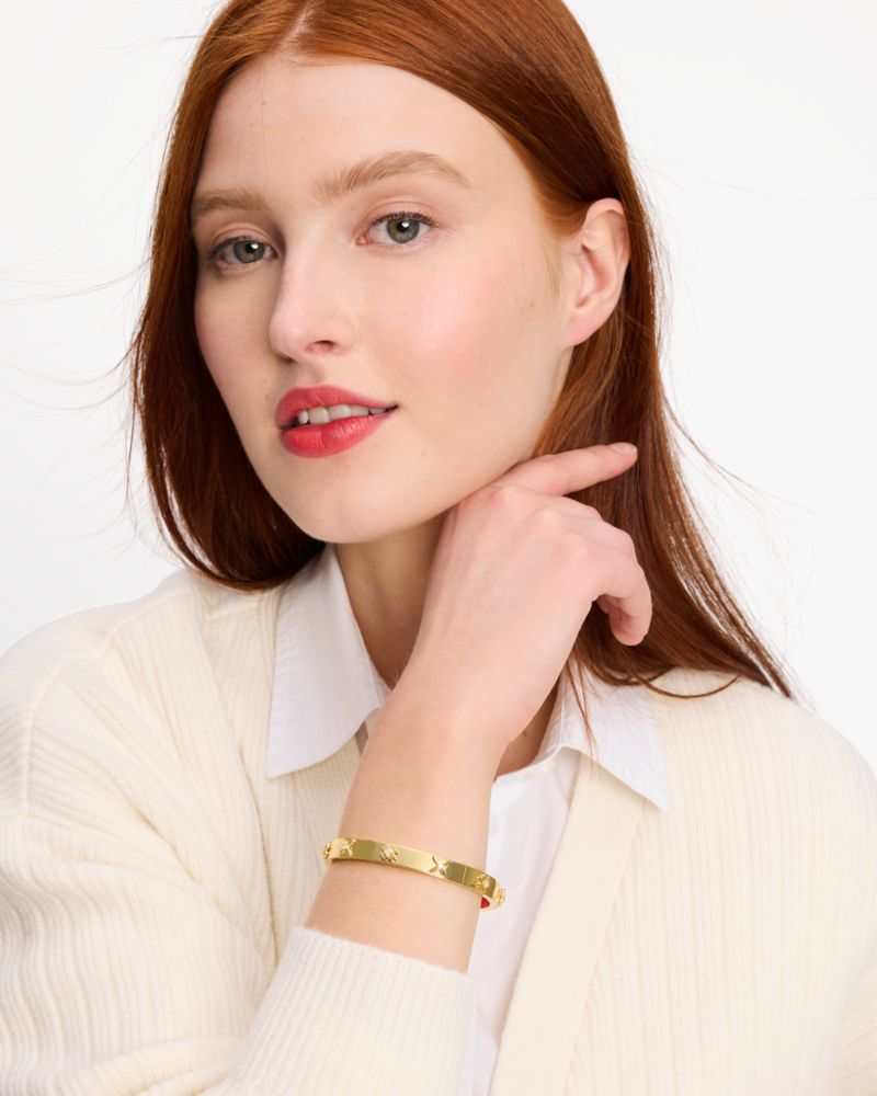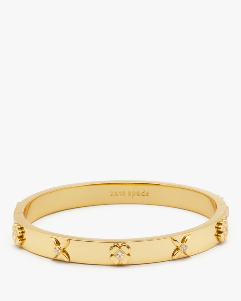 We've reimagined our signature spades as an elegant floral motif. Here, we used it on this classic hinged bangle with sparkling accents.