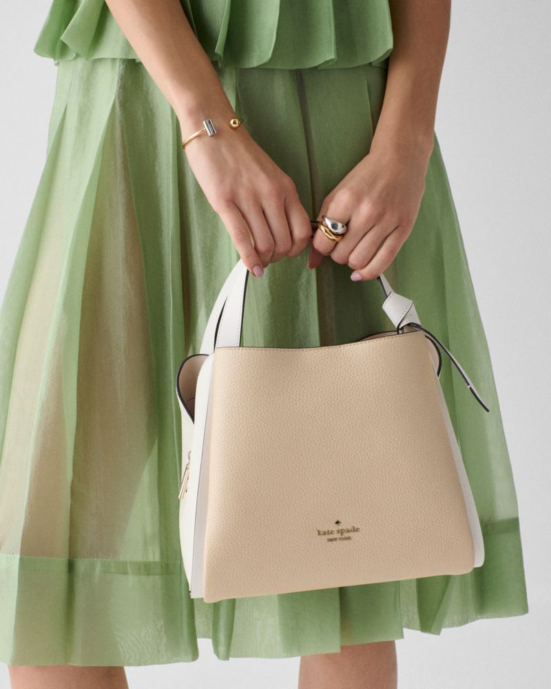 - Gold hardware (light cream multi); Silver hardware (crisp peach multi, north star multi)