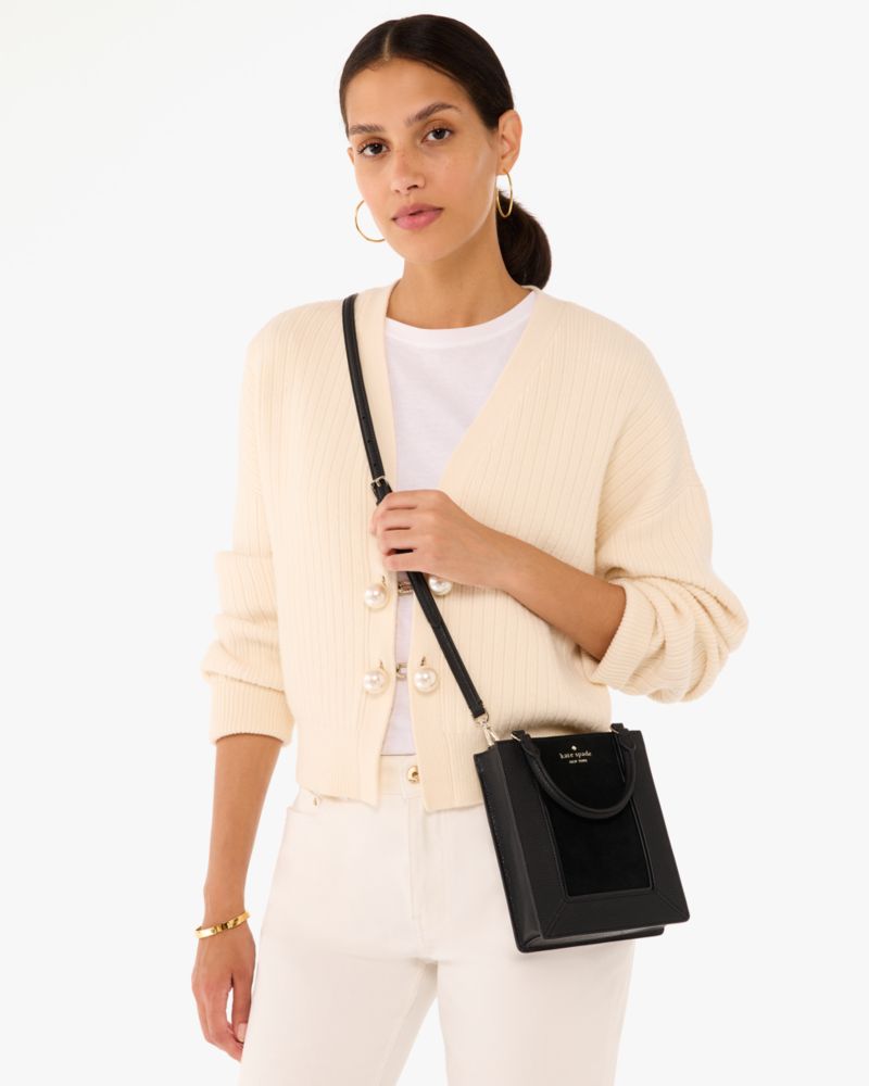 Crafted from soft suede with gold metal accents, the Lena mini tote is perfect for on-the-go moments. Designed with multiple straps and an interior pocket for your essentials, this versatile style will be a chic addition to your collection.