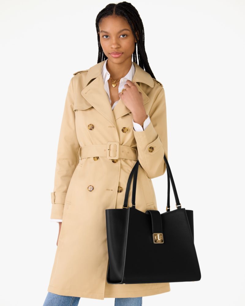 Channel timeless style with our Phoebe Large Tote. This elegant tote bag is crafted from refined grain leather with a spacious interior and pockets for all your essentials. Take yours to the office, brunch, weekend outings and more.