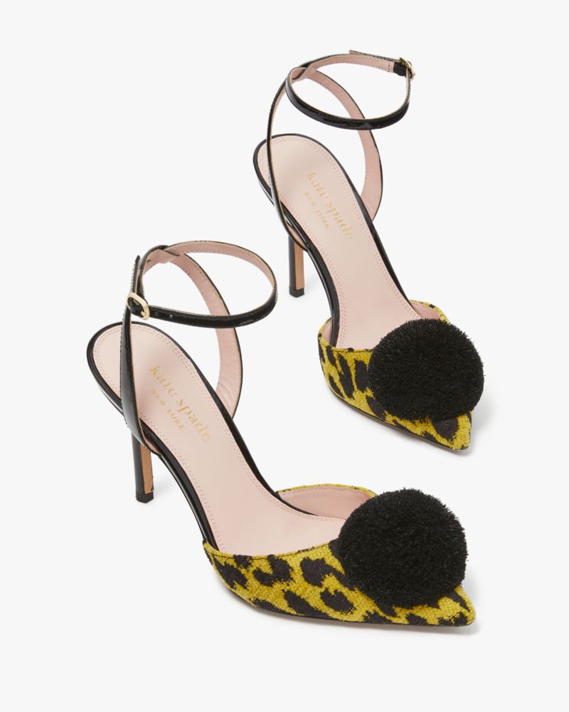 Kate Spade,Amour Pom Leopard Pumps,Chenille,Sandals,Fur Embellishment,Mixed Media,Pattern,Color Block,Pom Pom,Cocktail,Multi Color