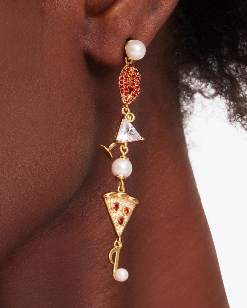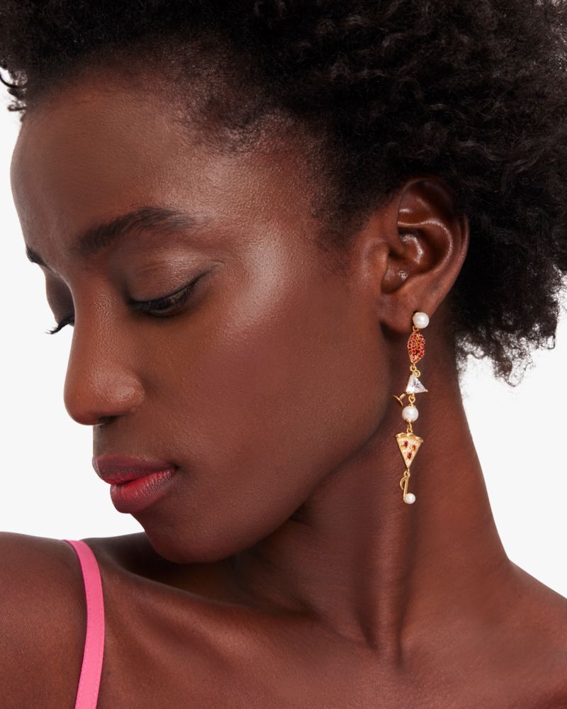 Kate Spade,Hit The Town Linear Earrings,Dangle Earring,Cubic Zirconia,Resin,Metal Material,Pearl,Food Embellishment,Novelt...,Multi Color