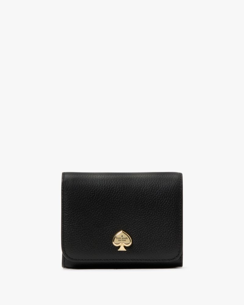 The Kayla wallet slips easily into your tote or crossbody bag, giving your routine a pocket-friendly upgrade. Six card slots, a bill slot and a zip coin compartment keep essentials sorted, and the flap snaps shut to keep everything in place. Crafted from pebbled leather with gleaming Argento hardware, this wallet makes everyday organization feel effortless.