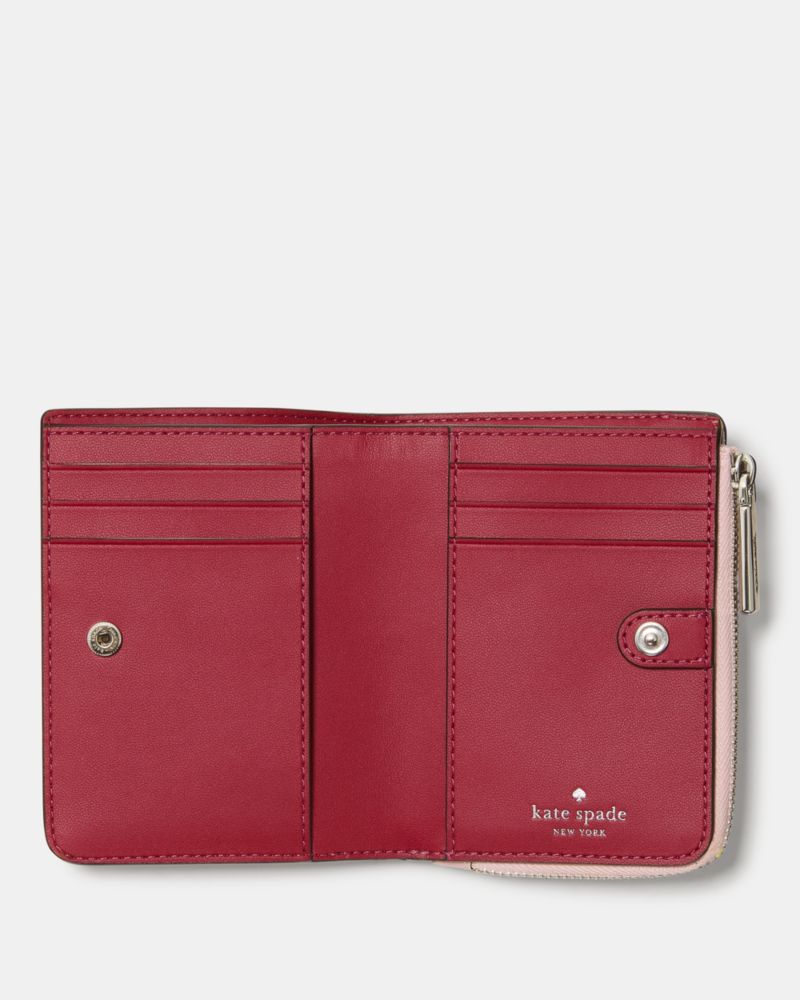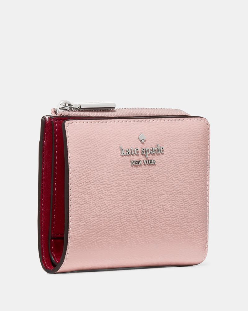 Kate Spade,Madison Small L-Zip Wallet,Bi Fold,Logo,Metal,Gusset,Casual,Pink