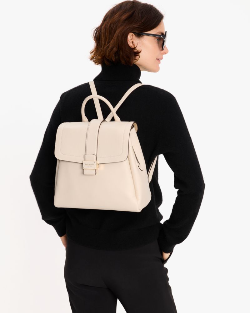 Meet Nouveau, our latest collection of vintage-inspired staples with a modern twist. This pebbled leather backpack features a belt-trimmed flap for a chic nod to '00s style.