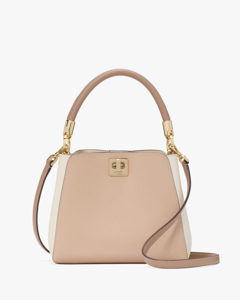 Kate Spade,Phoebe Small Top Handle Bag,Lining Leather,Satchel,Metal,Color Block,Logo,Lined,Day Party,Beige