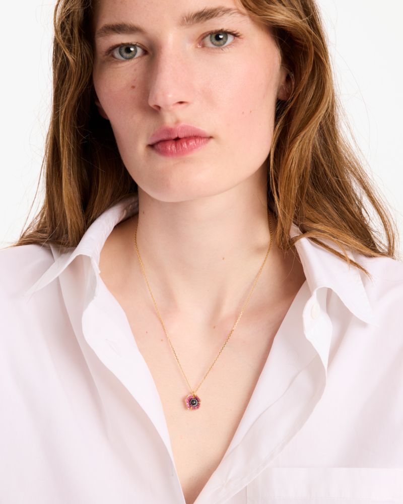 Give your look some floral flourish with this mini pendant featuring a crystal-embellished poppy.