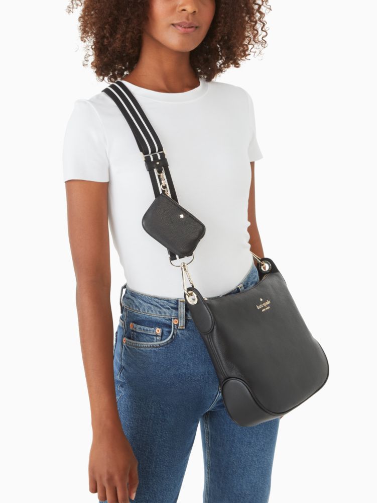 Kate Spade,Rosie Large Crossbody,Leather,Coin,Crossbody,Logo,Word Embellishment,Stripe,Metal,Lined,Casual,Black