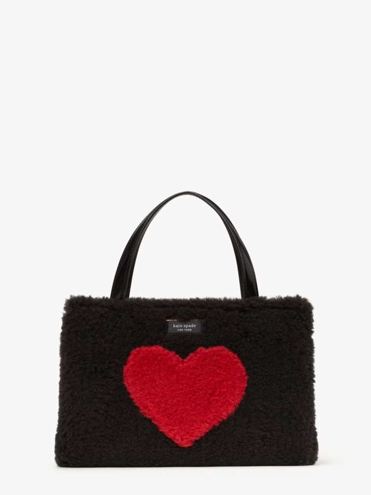 Sam Icon Intarsia Heart Faux Shearling Small Tote