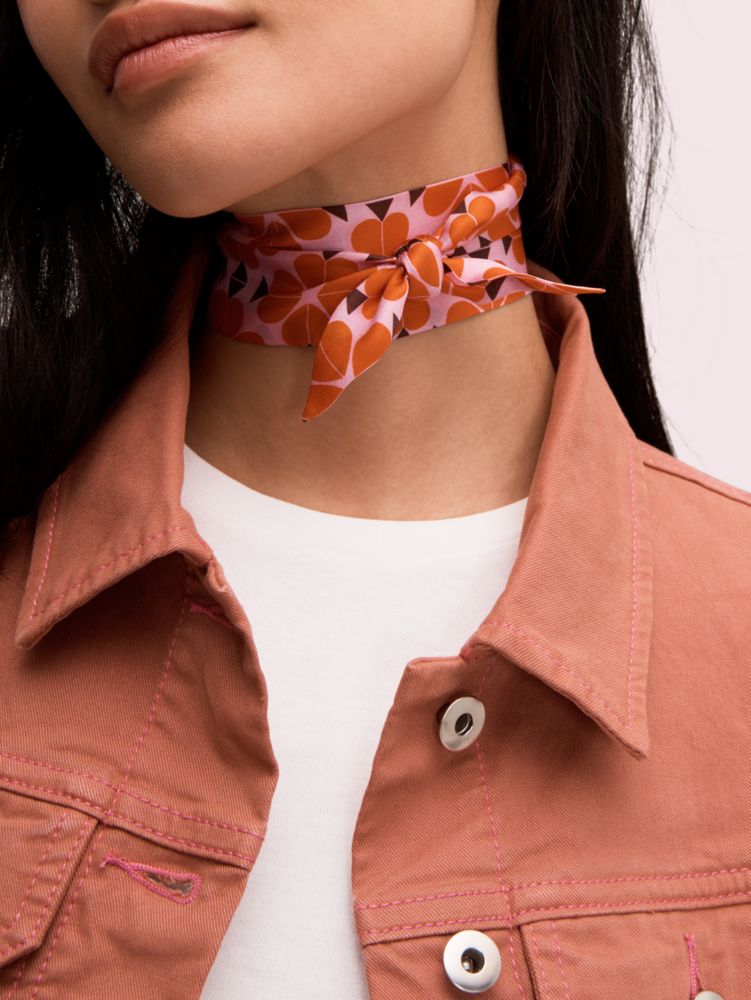did you see this skinny scarf on the spring runway? we styled it with the matching spade flower print dress. it was very 1970s chic. you can wear it knotted around your neck like our model did. or wrap it around your wrist or the handle of your favorite bag. it's really quite versatile when you think about it.