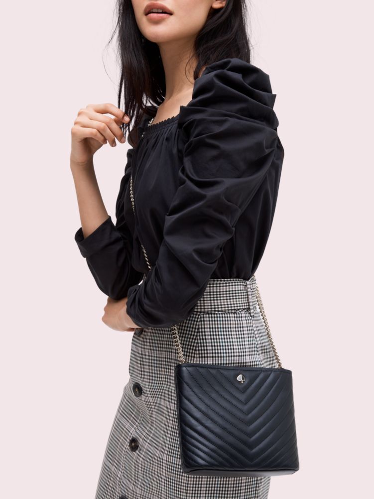 we designed our amelia small convertible crossbody bag with smooth lambskin leather quilted in a concentric formation around our iconic faceted enamel spade (in case it wasn't radiant enough). gently structured for everyday use, the bag’s strong silhouette is balanced with soft, feminine details like rounded corners and a refined chain strap that converts it into a shoulder bag. think of it this way: it's like two bags in one.