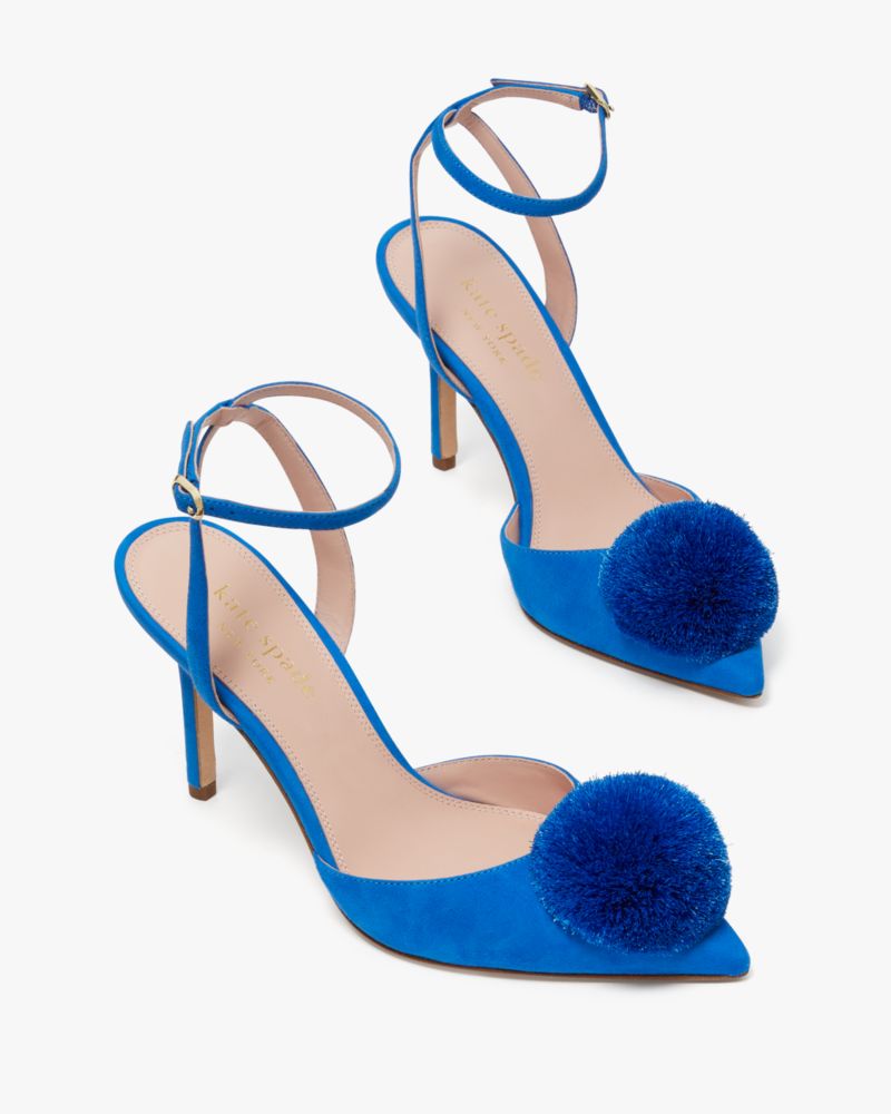 Oh, shoes! Our one true love... Add these playful suede pumps showcasing a pair of pom-poms to the collection for those nights when you want to show out.