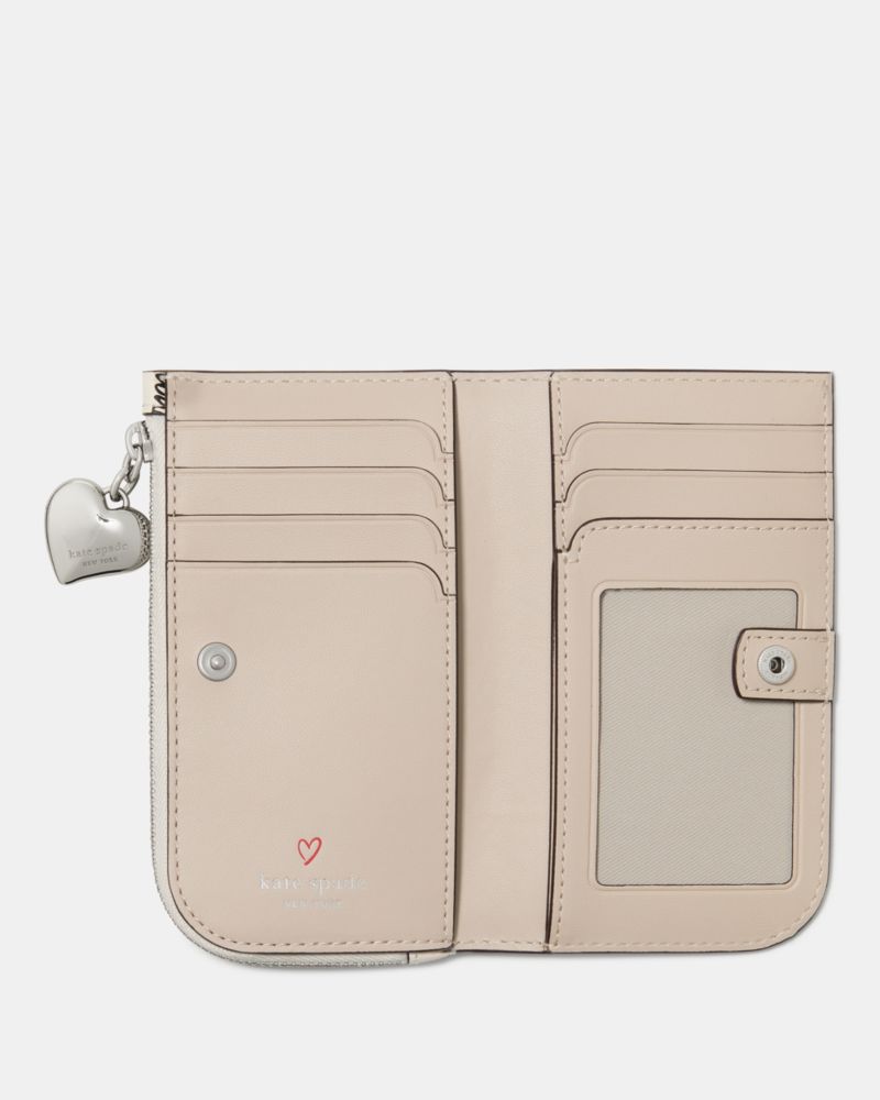 Kate Spade,Devin I Love You Bifold Wallet,Leather,Bi Fold,Metal,Casual,Cream