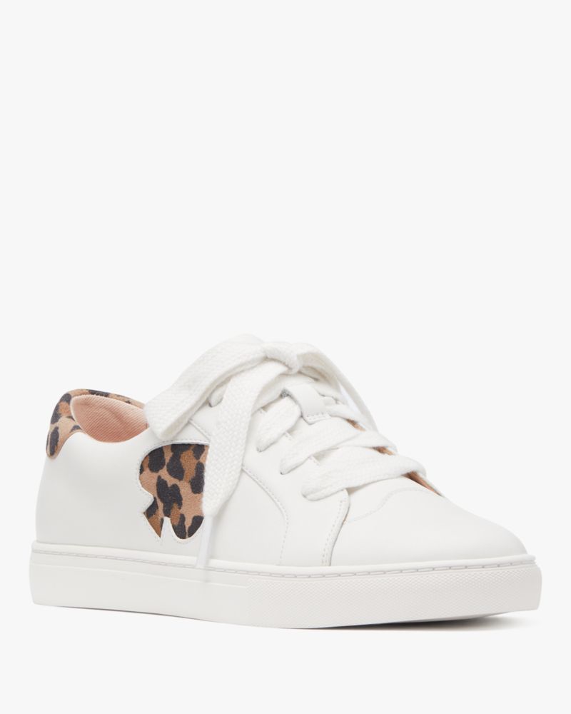 Kate Spade,Fez Spotted Leopard Sneaker,Rubber,Cotton,Lining Cotton,Casual,Pattern,Mixed Media,Casual,White