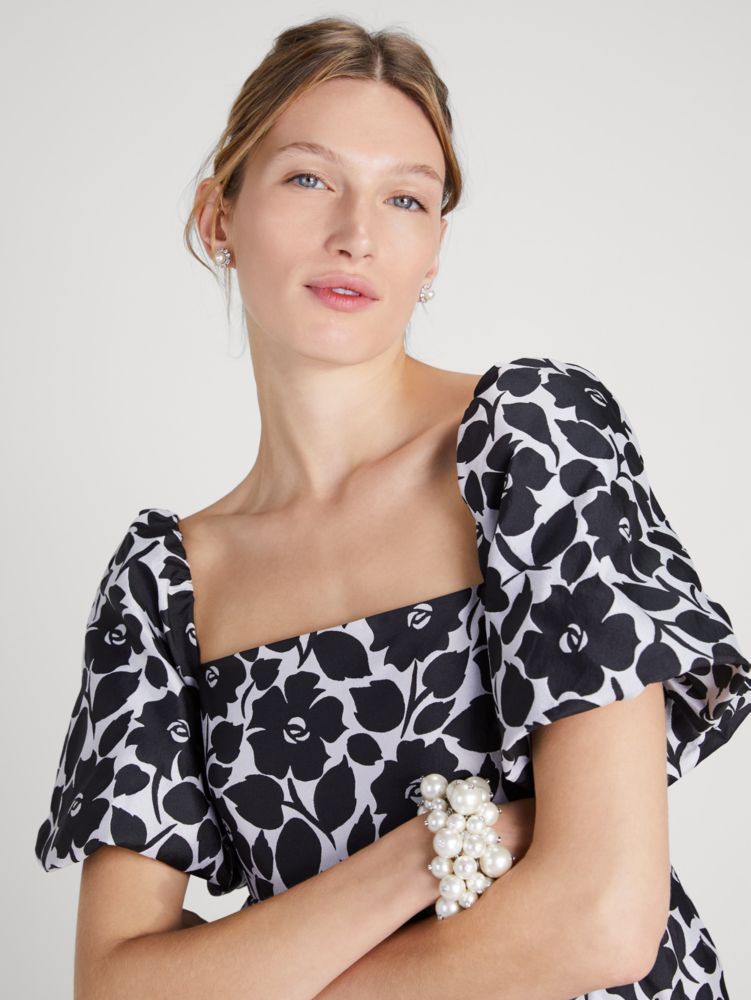 Let your look bloom with the rose-garden-inspired print of this taffeta midi dress.