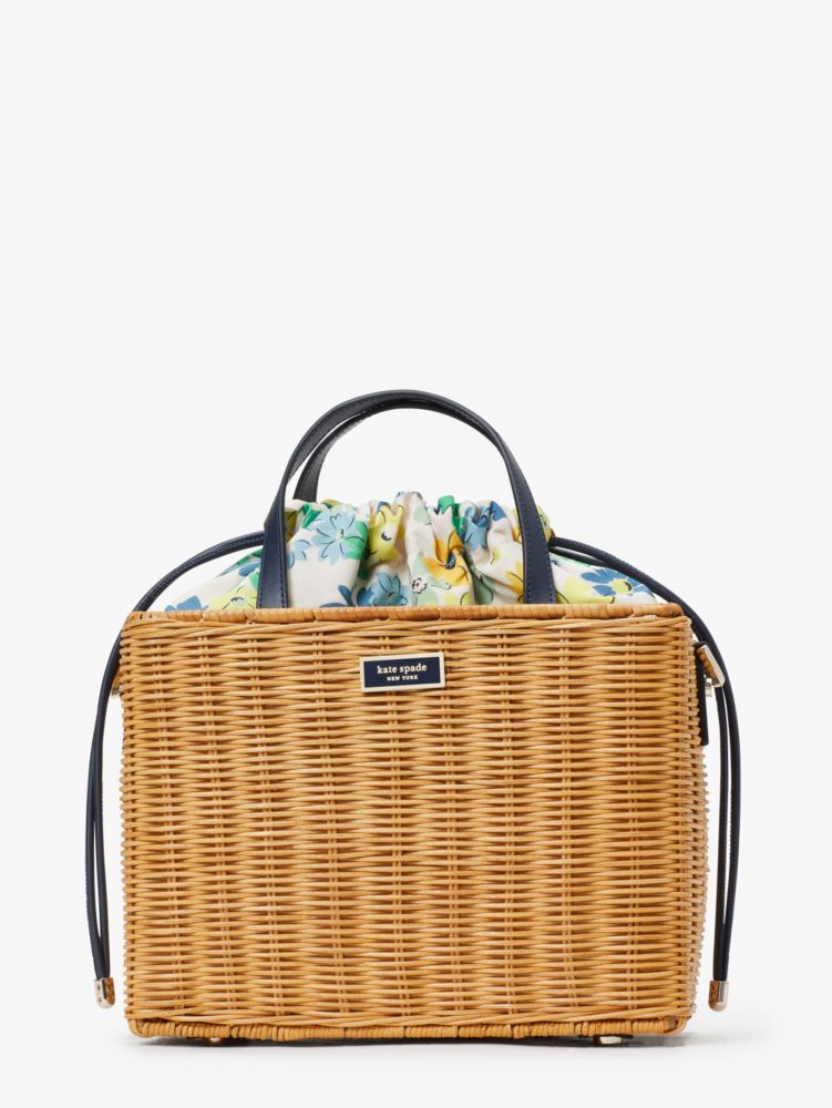 Check out our new Sam satchel. We kept the same utilitarian shape and thoughtful details that made it a crowd favorite in 1993, then updated it in wicker and colorful florals for spring.