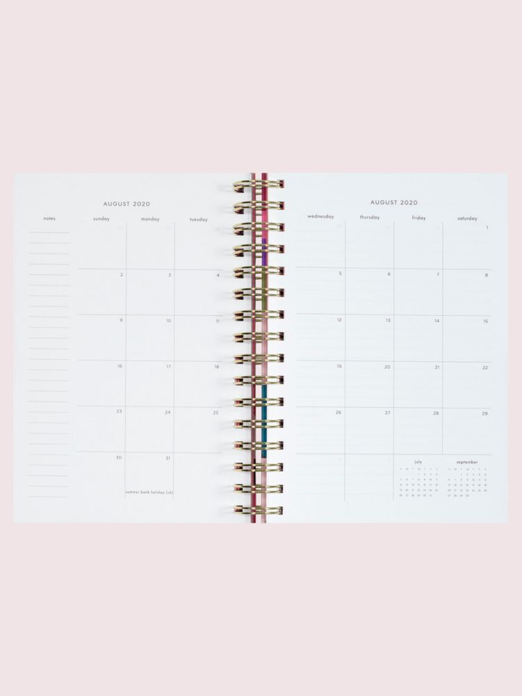 - includes: gold foil sticker sheet, laminated tabs, monthly & weekly spreads, holidays & celebrations, notes pages, interior pocket