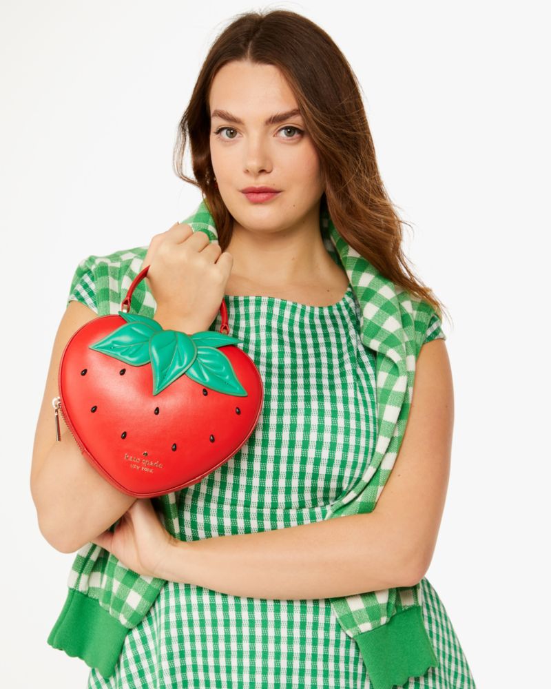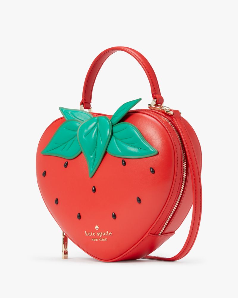 Kate Spade,Strawberry Dreams 3d Strawberry Crossbody,Lining Leather,Crossbody,Logo,Metal,3D Embellishment,Lined,Day Party,Red