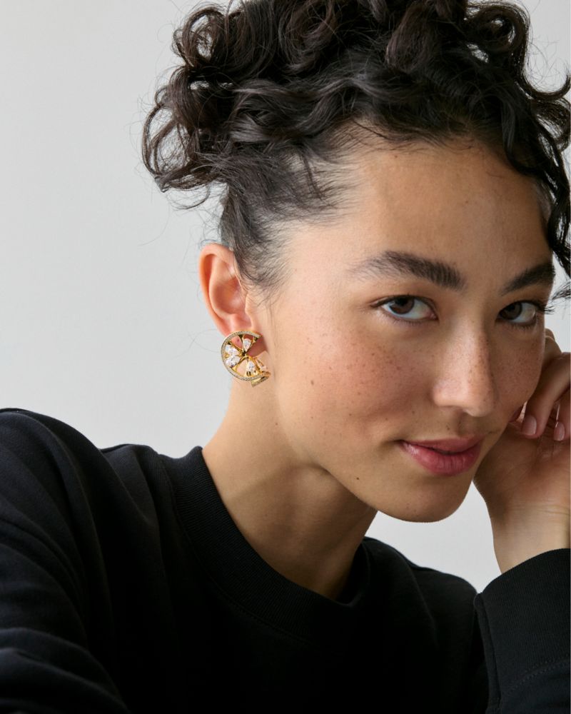 Adorned with crystals, these statement earrings give your look an unexpected—and very chic—twist.