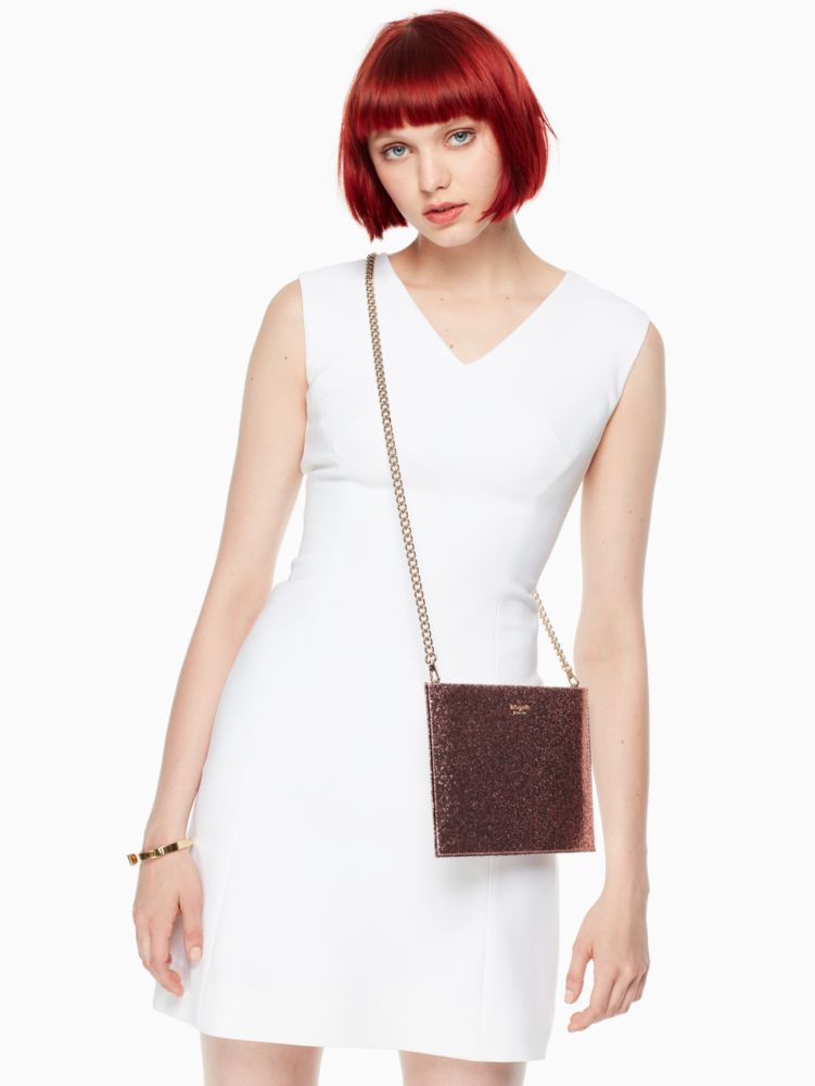 few things say lasting love like rose gold glitter. whether you're the one tying the knot or simply a well-dressed guest, this slim, zip-top crossbody bag is just roomy enough for a few big day essentials.
