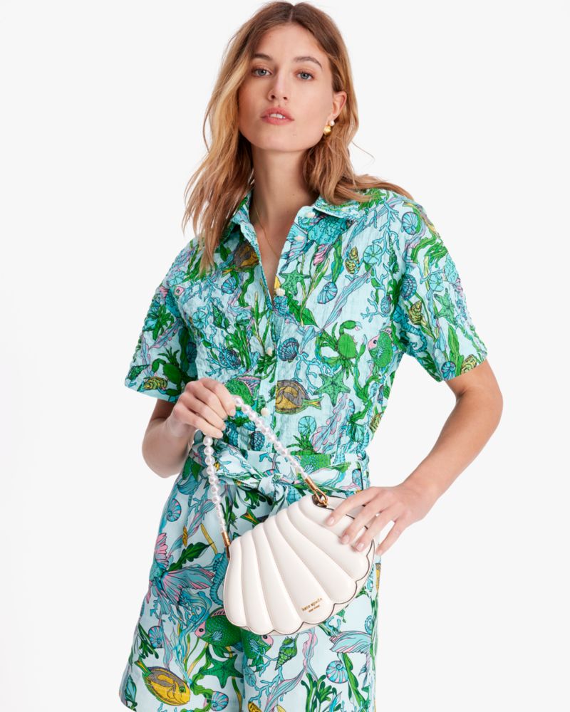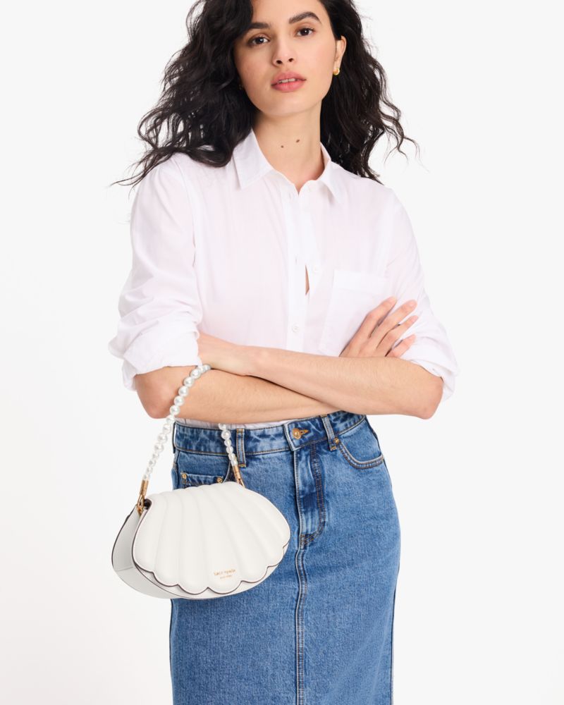Kate Spade,What The Shell 3d Shell Crossbody,Leather,Crossbody,3D Embellishment,Pearl,Logo,Metal,Gold Metal,Day Party,