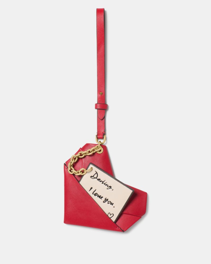 Kate Spade,Yours Truly Origami Heart Bag Charm,Leather,Bag Charm,Chain Detail,Compact,Key Ring,Red