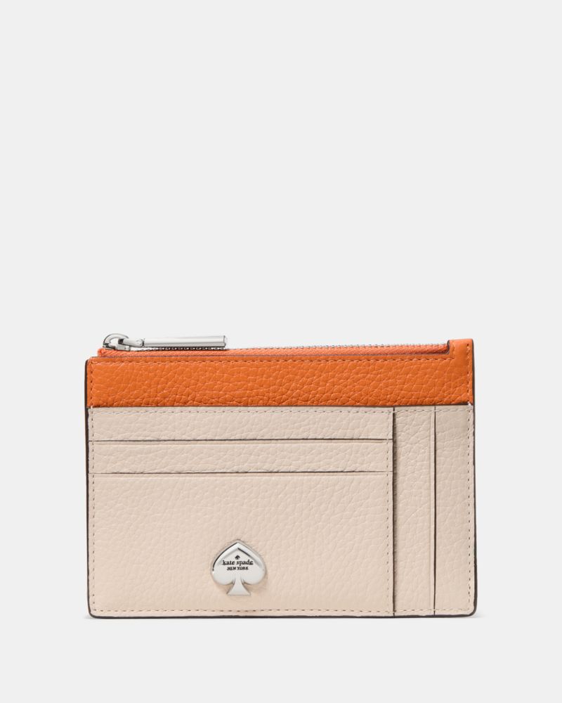 Kate Spade,Madison Small Slim Card Holder,Card Case,Color Block,Metal,Logo,Casual,Brown