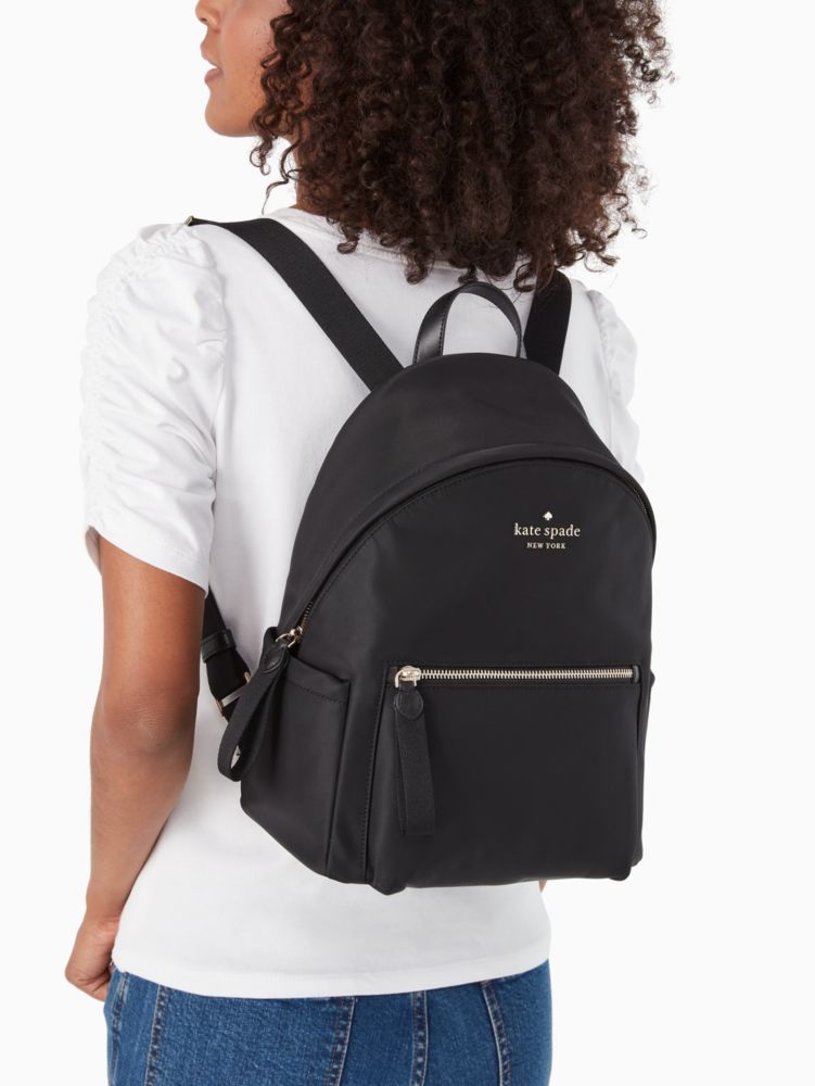 Kate Spade,Chelsea Nylon Medium Backpack,Nylon,Backpack,PVC,Logo,Word Embellishment,Casual,Black