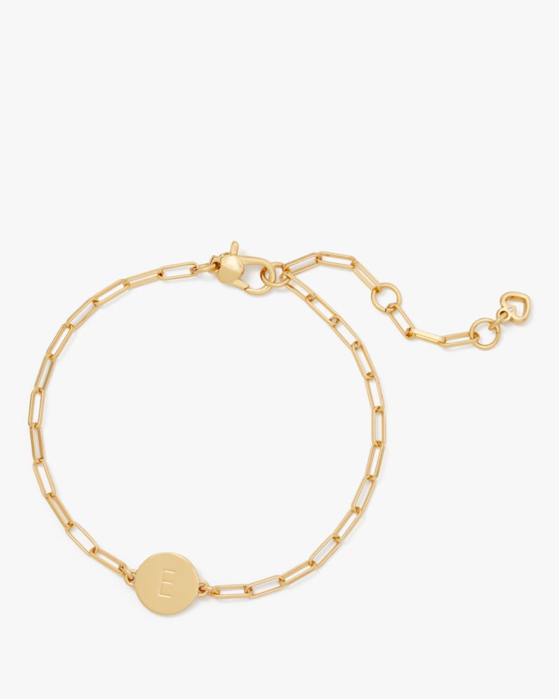 Kate Spade,Initial E Chain Bracelet,Cubic Zirconia,Disc,Initials Embellishment,Gold Plated,Yellow Gold Plated,Casual,