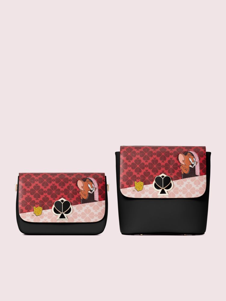 for every outfit, style or season change, this clever snap-on faux leather flap will completely transform the look of the make it mine customizable twistlock shoulder bag or backpack. in this case, by adding a faux leather accent we printed with jerry mouse for the year of the rat.