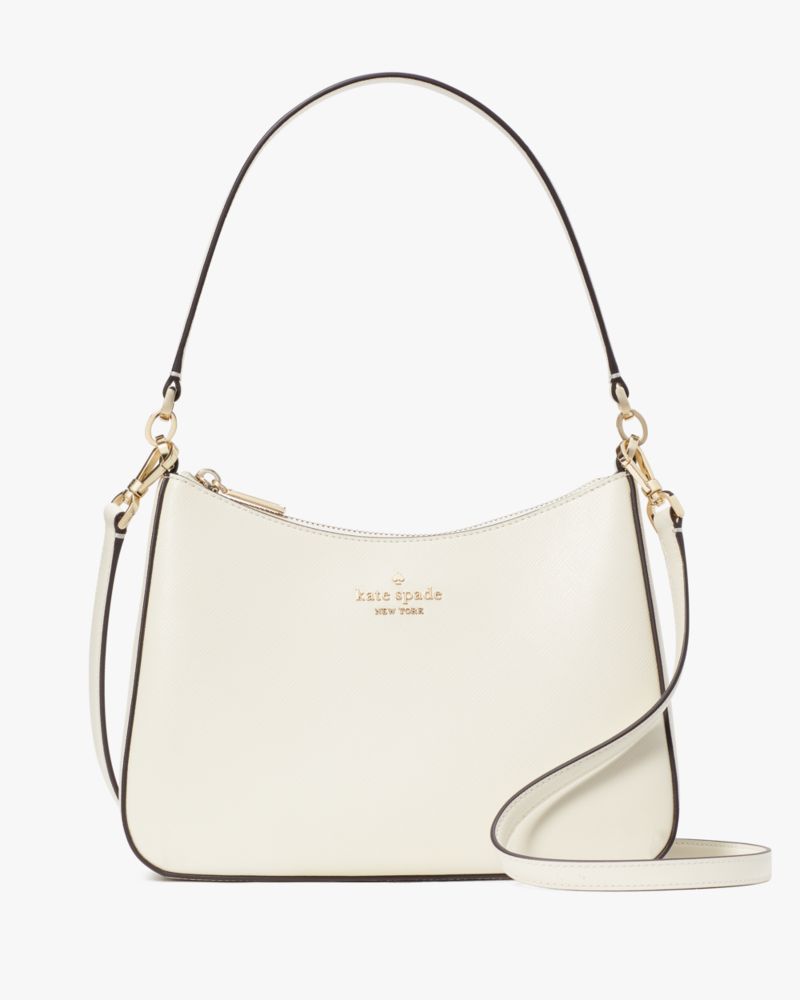 Kate Spade,Margot Convertible Shoulder Bag,Leather,Shoulder Bag,Metal Material,Logo,Metal,Adjustable,Gold Metal,Casual,White