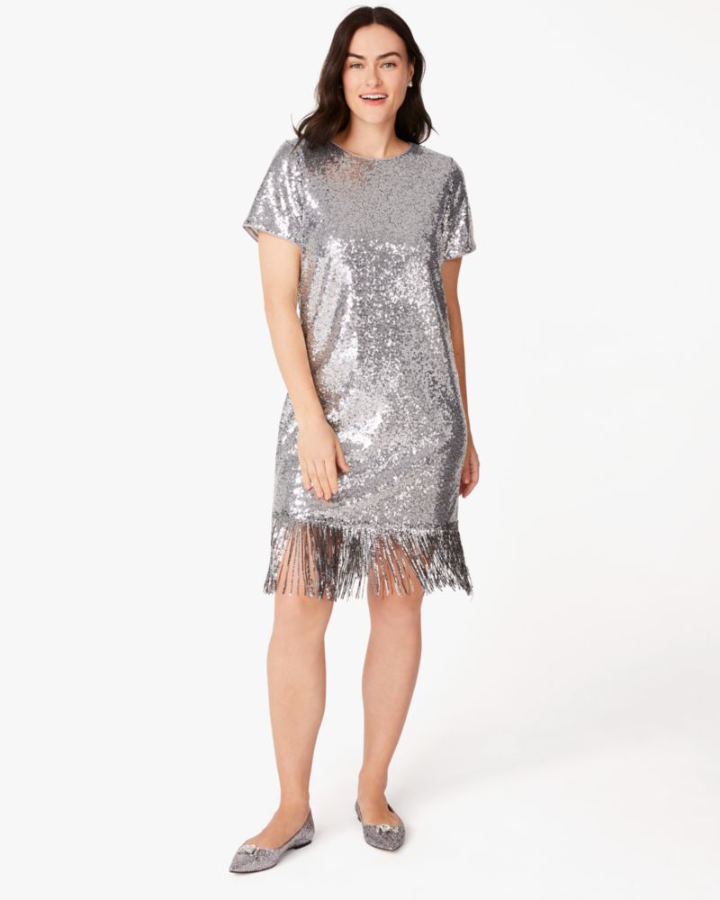 Kate Spade,Sequin Fringe Dress,Polyester,Sheath,Embellished,Sequin,Fringe,Party,Cocktail,Silver
