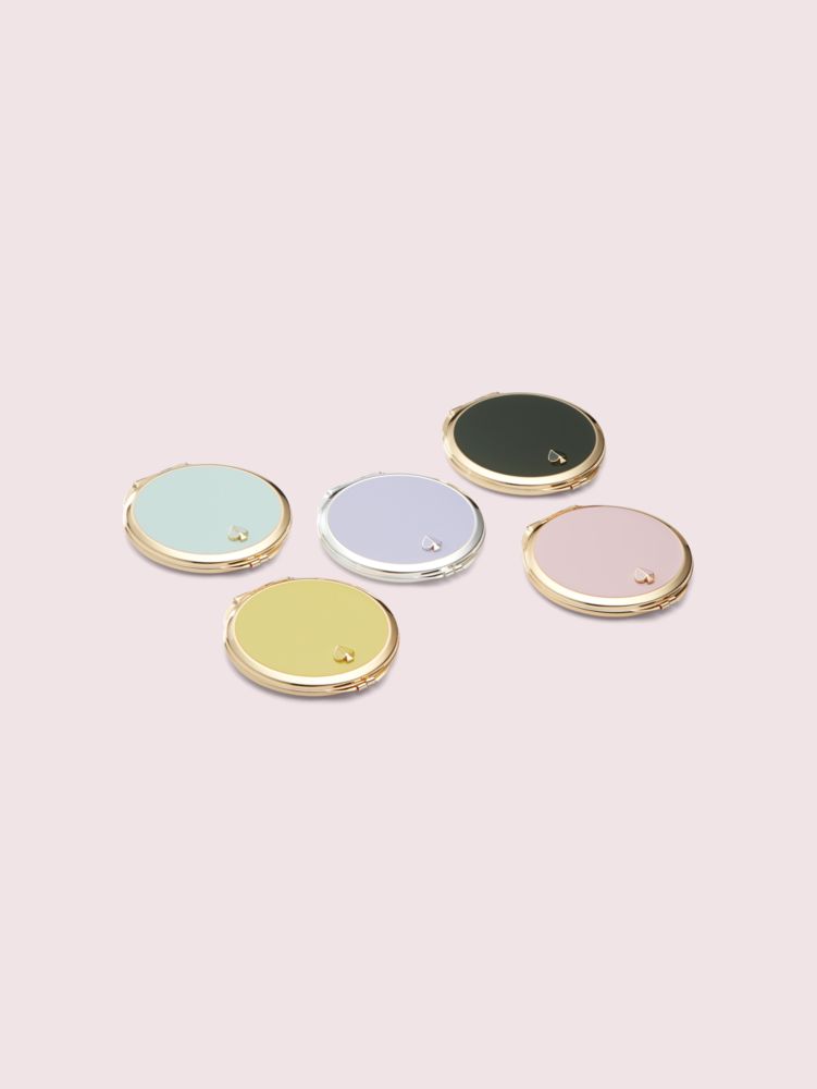 here's a very chic compact from our spade street collection. it's modern, classic and comes in the prettiest colors. we made it from smooth metal so it's durable and feels really nice to hold while touching up your lipstick. but our favorite details are the angular gold-tone edges and faceted spade.