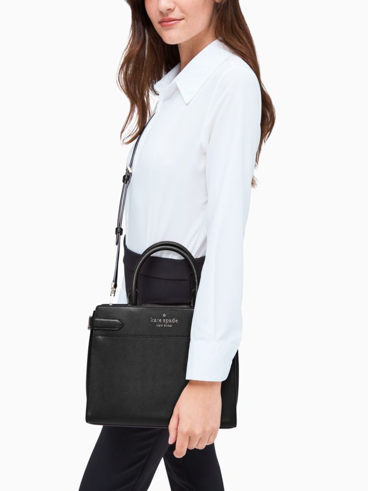 Crafted from durable Saffiano leather, this structured satchel—complete with a detachable crossbody strap!—is the perfect everyday bag.