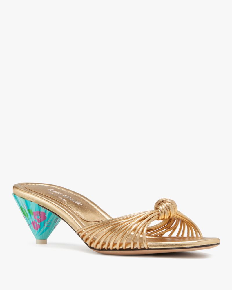 Kate Spade,Tiki Sandals,Leather,Metallic,Nappa Leather,Sculptural Heel,Slides,Knot,Day Party,