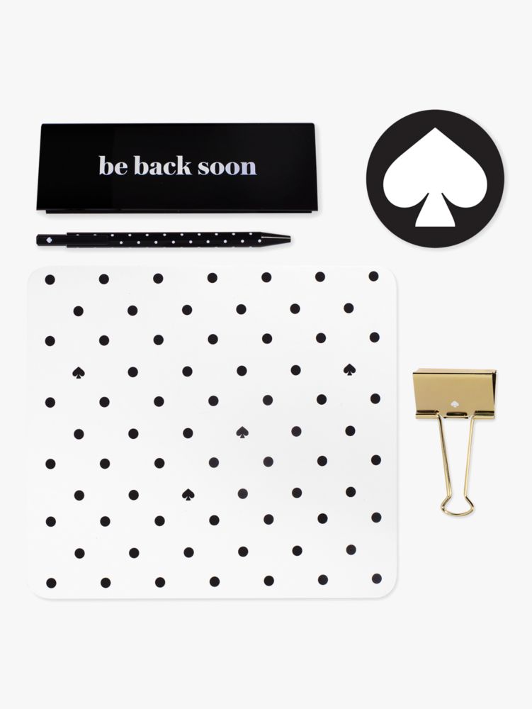 Kate Spade,Be Back Soon Black Spade Dot Desk Set,